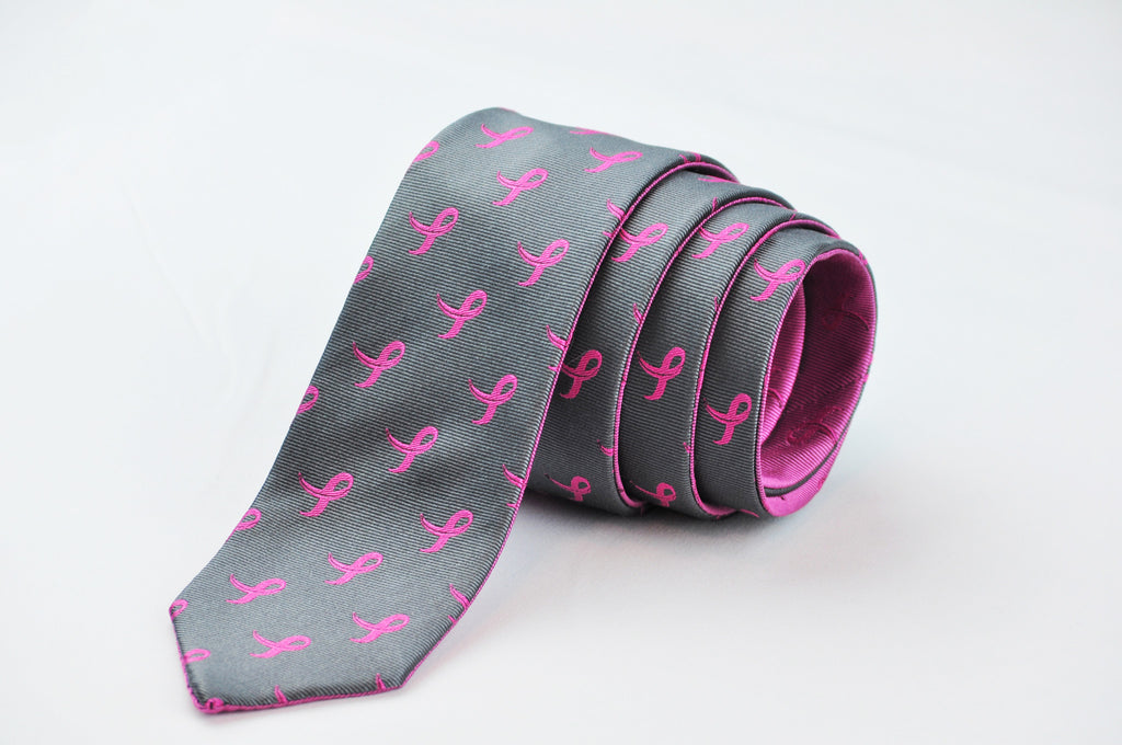 Proceeds of this design will go to the Susan G. Komen Foundation Eastern Washington Affiliate. The design is a very unique and versatile Reversible Necktie, which can be worn on either the Gray or Pink side.